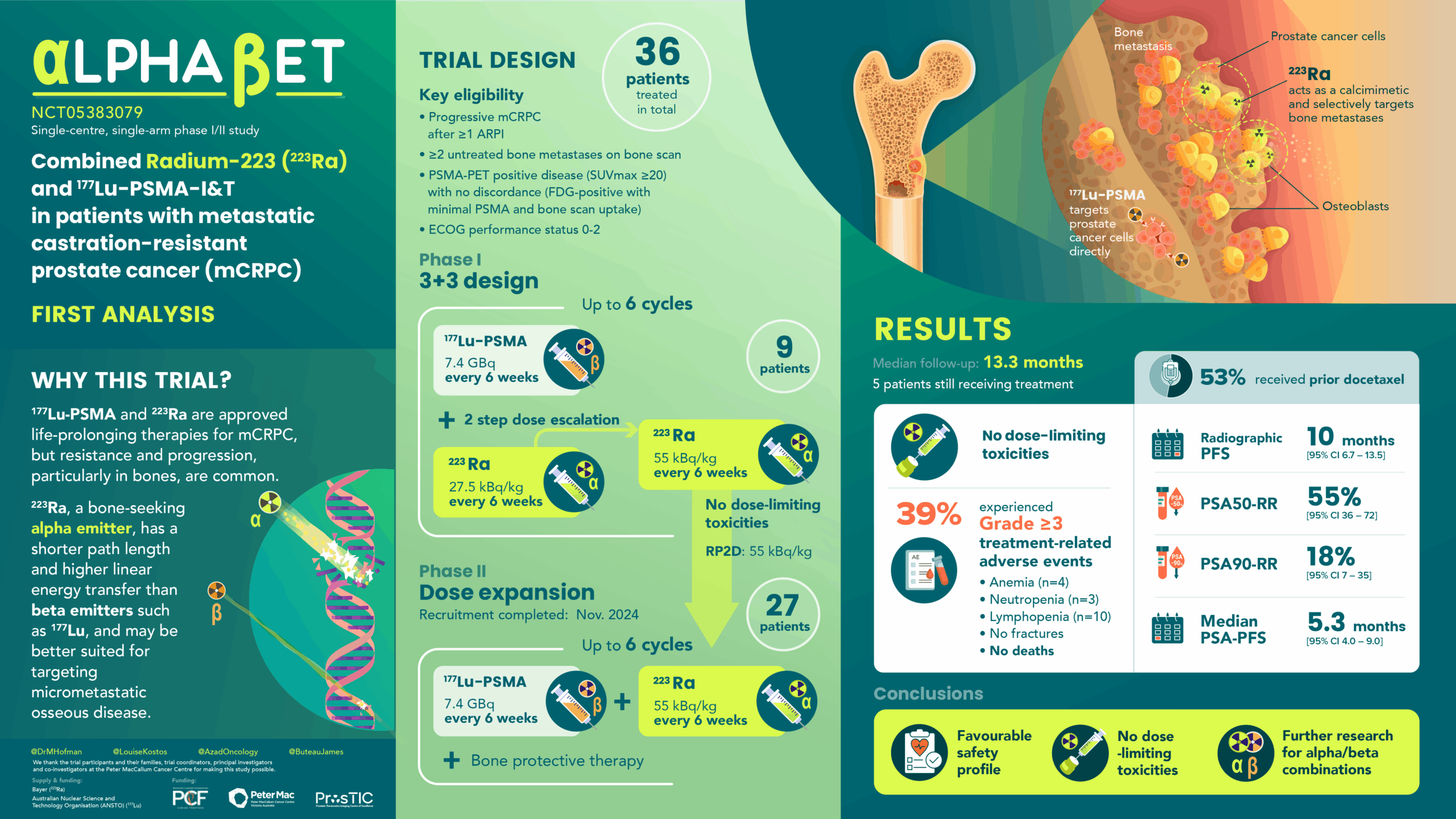 Context: Alphabet clinical trial (combined Lutetium and Radium for prostate cancer treatment)